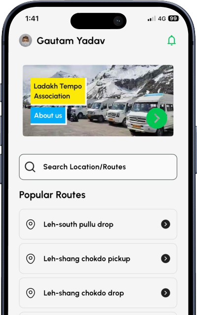 Ladakh Tempo is a specialized, local-first ride-hailing platform dedicated to providing safe, reliable, and expert-guided travel throughout the challenging and beautiful terrain of Ladakh. The mission is simple but powerful: Ensure every passenger experiences the best of Ladakh with the convenience of modern technology and the expertise of local drivers.